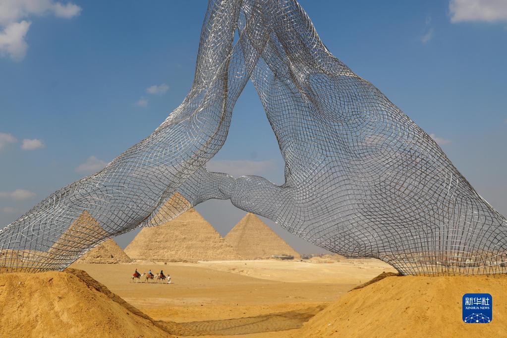 這是10月21日在埃及吉薩金字塔景區舉辦的藝術(shù)展上拍攝的意大利藝術(shù)家洛倫佐·奎因創(chuàng )作的藝術(shù)作品。