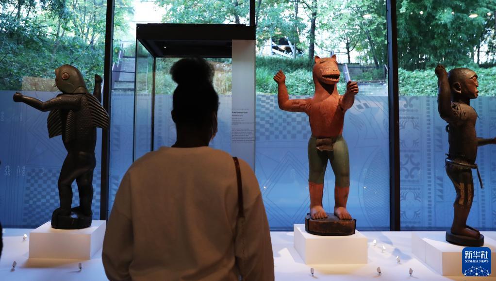 10月28日,一名女子在法國巴黎凱布朗利博物館參觀(guān)即將歸還貝寧的文物。