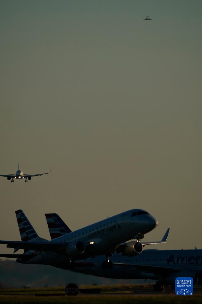 這是11月8日在美國弗吉尼亞州阿靈頓的里根國家機場(chǎng)拍攝的商業(yè)航班客機。