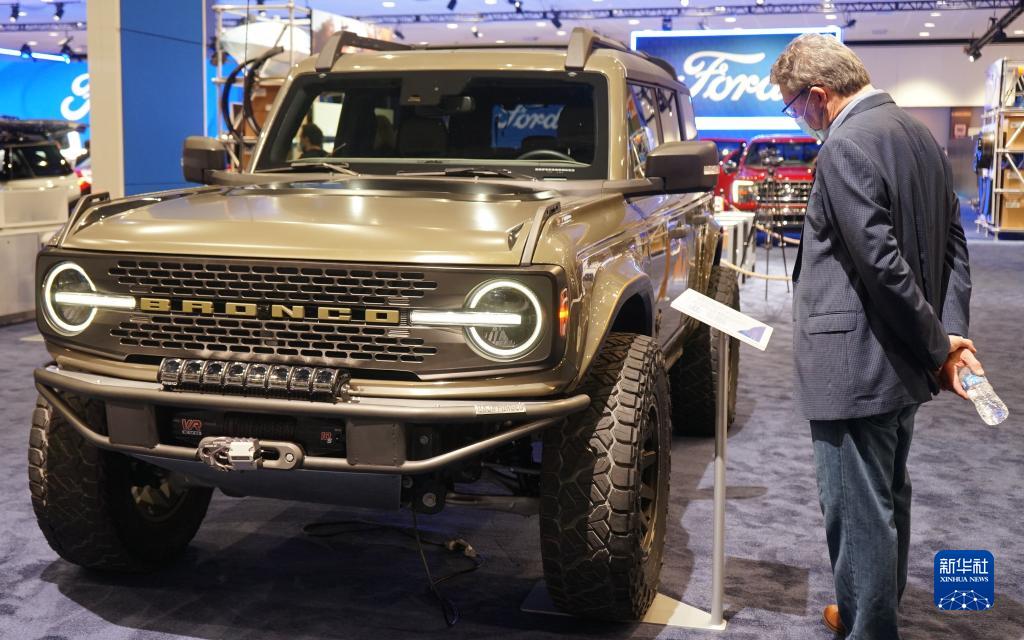 11月17日,一名男子在美國洛杉磯車(chē)展媒體預展上觀(guān)看參展汽車(chē)。