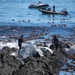 據當地媒體報道,當天上午一具座頭鯨尸體在位于市區的海岸邊被發(fā)現,當地政府隨后在警方和海洋救援組織的協(xié)助下將尸體清理。