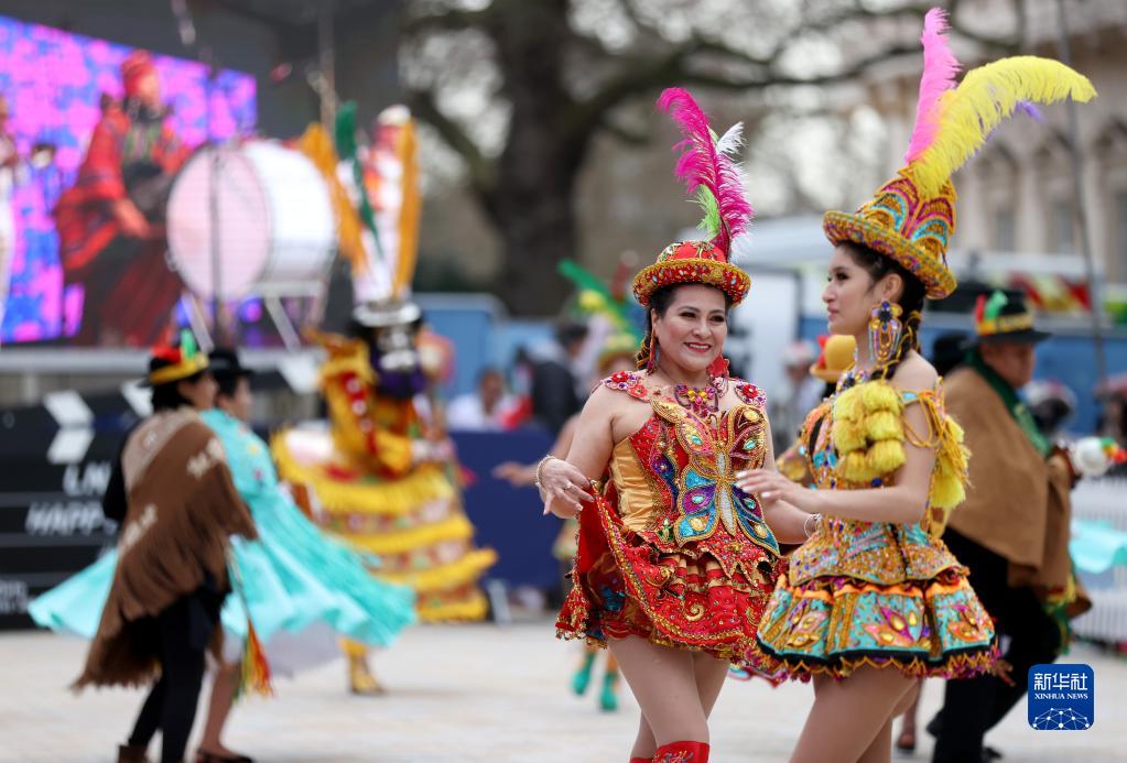 2022年1月1日,人們在英國倫敦參加新年游行活動(dòng)。