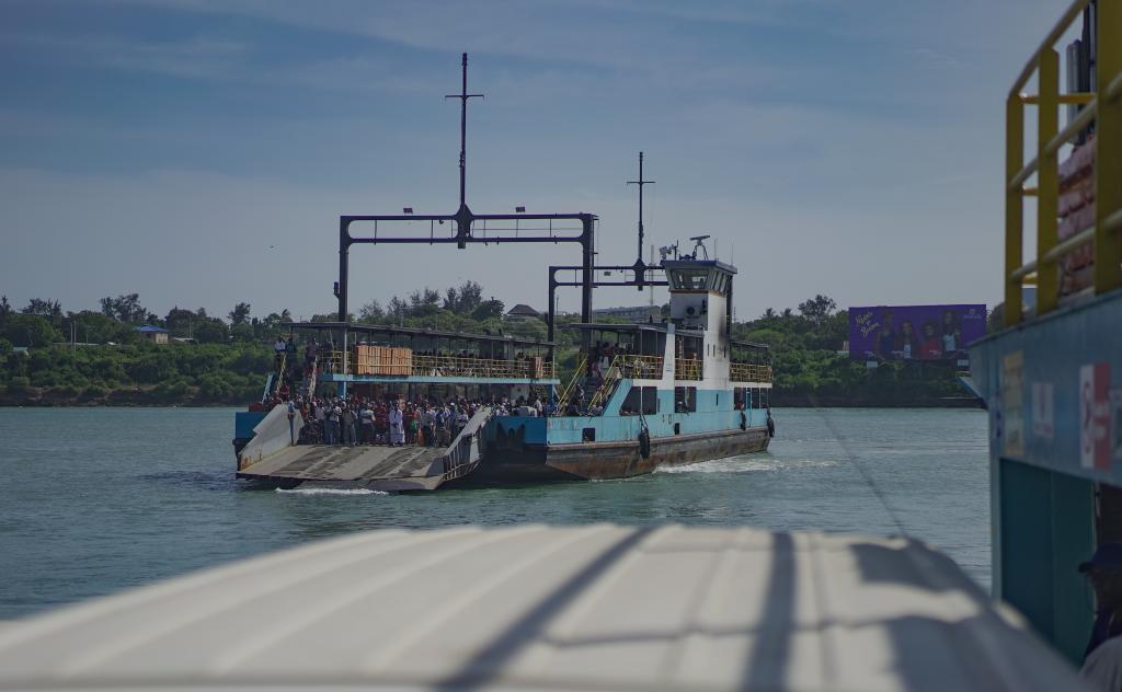 2020年1月25日,在肯尼亞蒙巴薩,在海上浮橋建成前,當地居民只能乘坐輪渡往返蒙巴薩島和利科尼鎮。新華社記者李琰攝