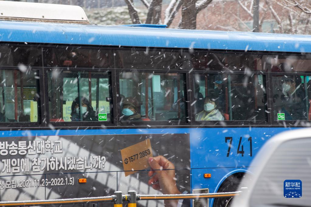 1月19日,在韓國首爾,乘客觀(guān)看車(chē)窗外的降雪。