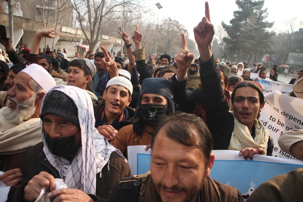 1月2日,阿富汗人在喀布爾街頭參加抗議活動(dòng)。當天,數千民眾在喀布爾抗議美國凍結阿富汗海外資產(chǎn)。新華社發(fā)(塞夫拉赫曼·薩菲攝)