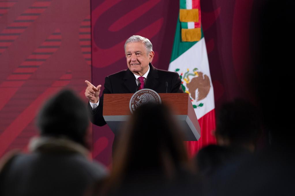2022年1月10日上午,墨西哥總統洛佩斯在墨西哥城總統府出席新聞發(fā)布會(huì )。新華社發(fā)