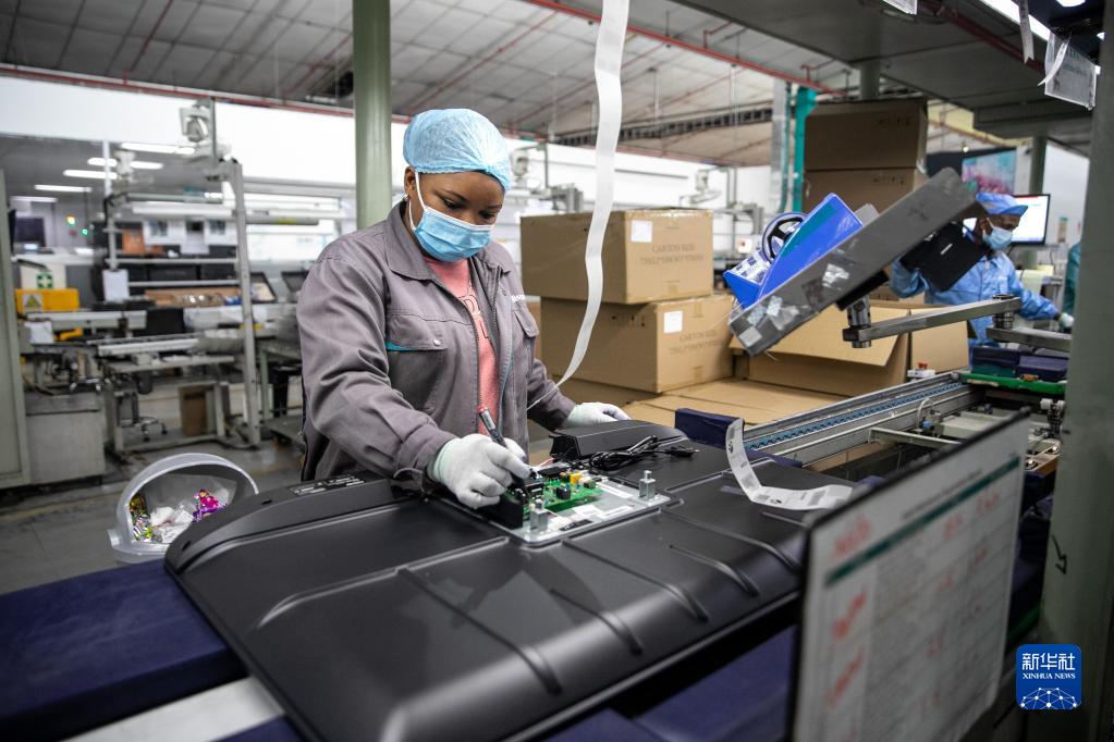 2022年6月1日,當地員工在南非開(kāi)普敦海信南非工業(yè)園的電視機生產(chǎn)線(xiàn)上工作。新華社記者 呂天然 攝