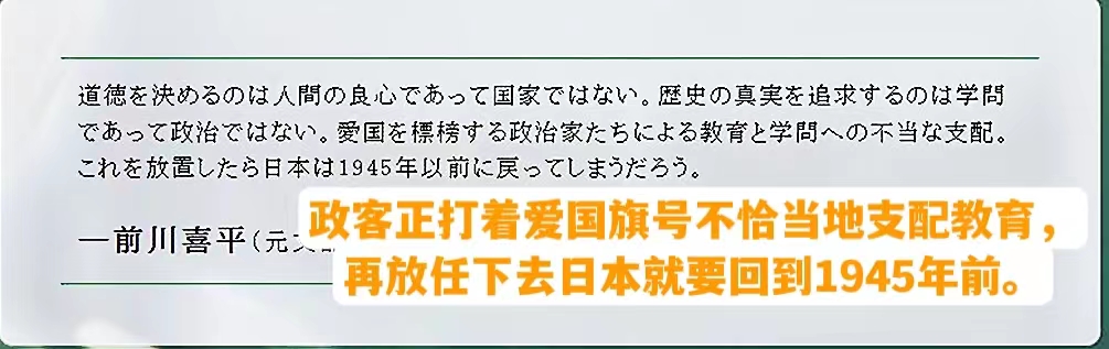 第三,日本政界打著(zhù)“愛(ài)國”旗號施壓教育界。