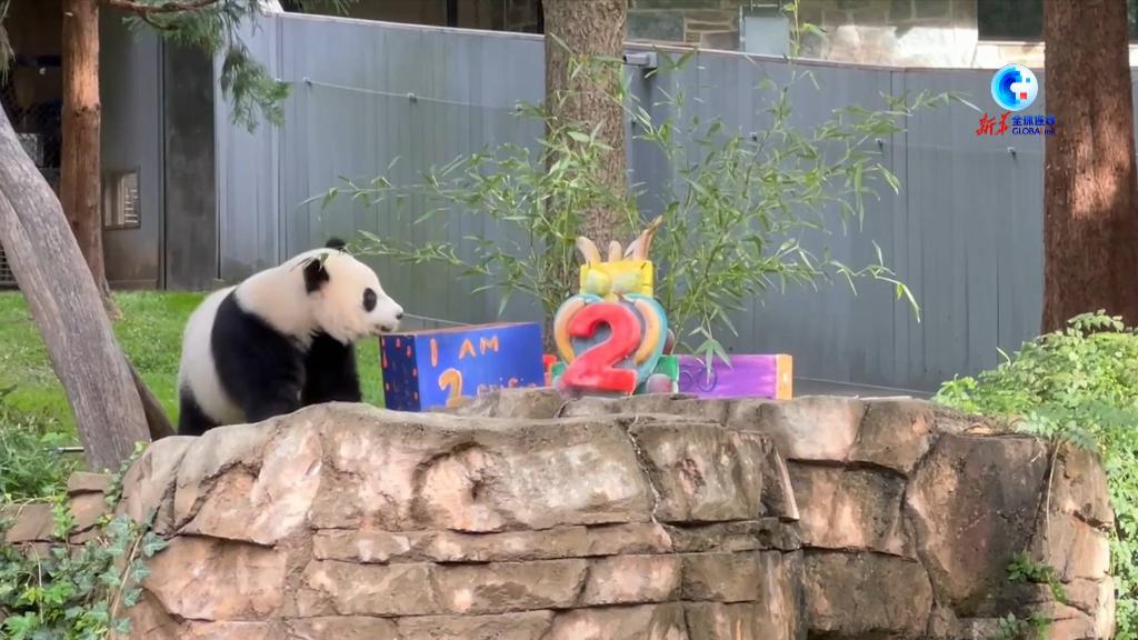 美國首都華盛頓史密森學(xué)會(huì )國家動(dòng)物園21日為大熊貓幼崽“小奇跡”慶祝兩歲生日。飼養員們專(zhuān)門(mén)為“小奇跡”制作了營(yíng)養美味的冰凍果蔬蛋糕,蛋糕正面的紅色數字“2”十分醒目,蛋糕周?chē)c(diǎn)綴著(zhù)紅薯、蘋(píng)果、胡蘿卜、梨、甘蔗、香蕉和竹子。
