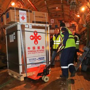 11月12日,工作人員在白俄羅斯明斯克國際機場(chǎng)卸載中國政府援助的新一批新冠肺炎疫苗。