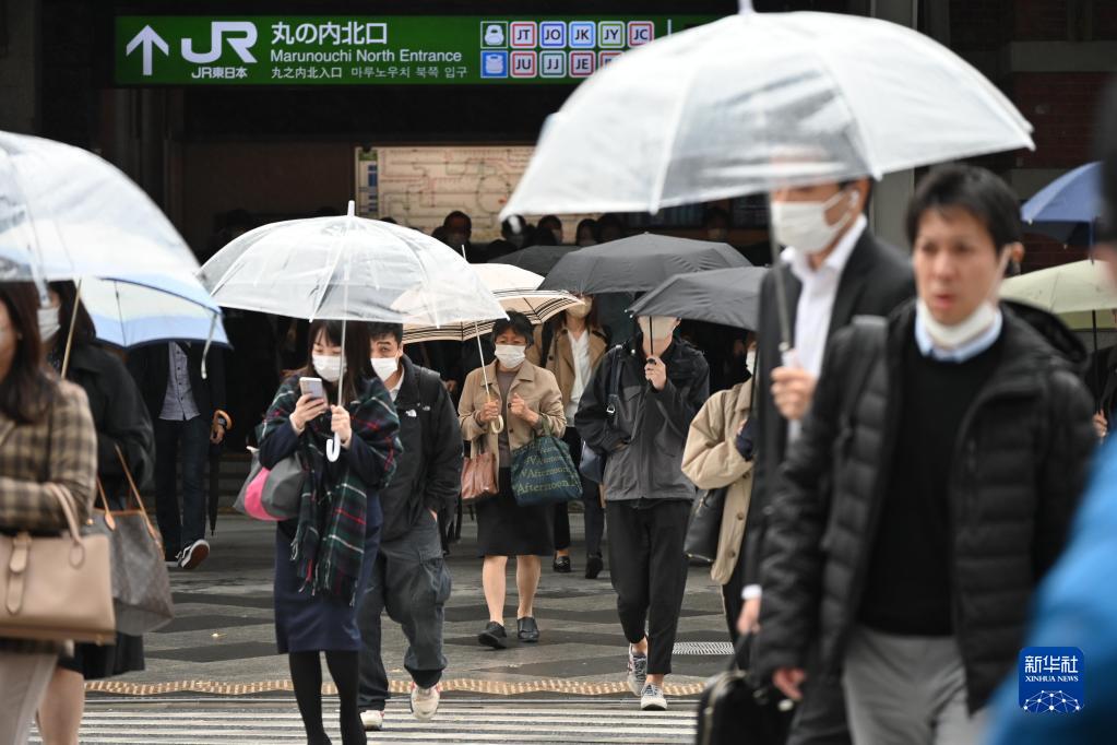這是11月15日,行人走在日本東京站丸之內出口附近的馬路上。