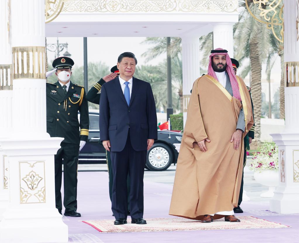 當地時(shí)間12月8日中午,沙特王儲兼首相穆罕默德代表國王薩勒曼為正在沙特進(jìn)行國事訪(fǎng)問(wèn)的國家主席習近平在利雅得王宮舉行歡迎儀式。新華社記者謝環(huán)馳攝