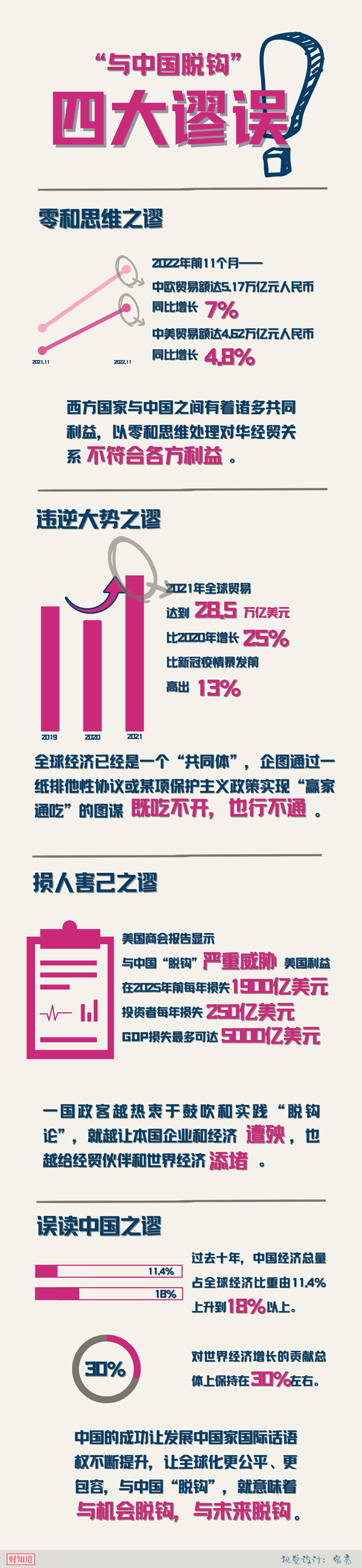 鼓吹“脫鉤論”,反映了西方某些人誤讀中國、自以為能夠以此遏制中國發(fā)展的盲目“自信”。他們取悅國內民粹主義勢力,圍繞中國話(huà)題不斷誤導輿論,完全無(wú)視中國為世界經(jīng)濟繁榮和全球供應鏈穩定作出的重大貢獻。