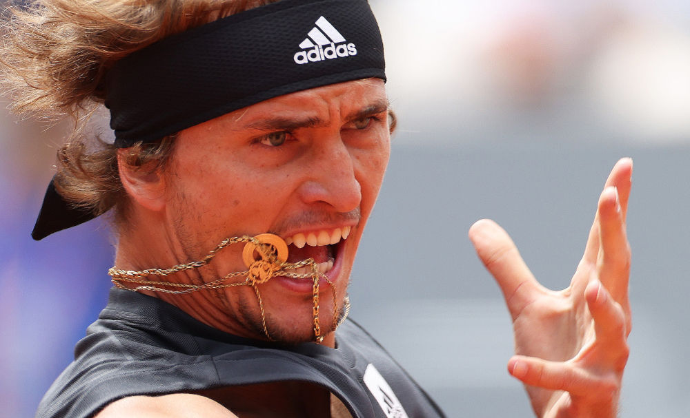 ↑2022年5月25日,茲維列夫在2022法國網(wǎng)球公開(kāi)賽男子單打第二輪比賽中。