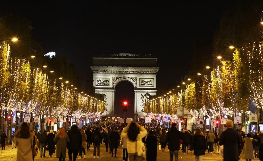 ↑這是2022年11月20日在法國巴黎拍攝的點(diǎn)燈后的香榭麗舍大街。