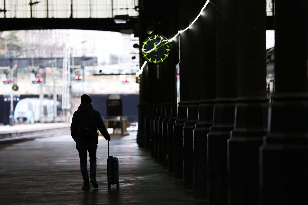 ↑2022年12月23日,一名旅客走過(guò)法國巴黎圣拉扎爾火車(chē)站的月臺。盡管法國國營(yíng)鐵路公司23日宣布與工會(huì )達成協(xié)議,取消原計劃于新年舉行的大罷工,但22日就已經(jīng)開(kāi)始的罷工活動(dòng)仍對圣誕假期的鐵路交通造成一定影響。