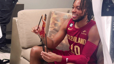 標志性雙手舉過(guò)頭頂做出投進(jìn)三分球的手勢