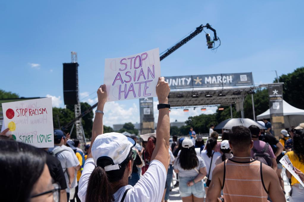 2022年6月25日,美國亞裔人士在首都華盛頓的國家廣場(chǎng)舉行集會(huì ),呼吁停止針對亞裔的仇恨及暴力犯罪行為。新華社記者劉杰攝