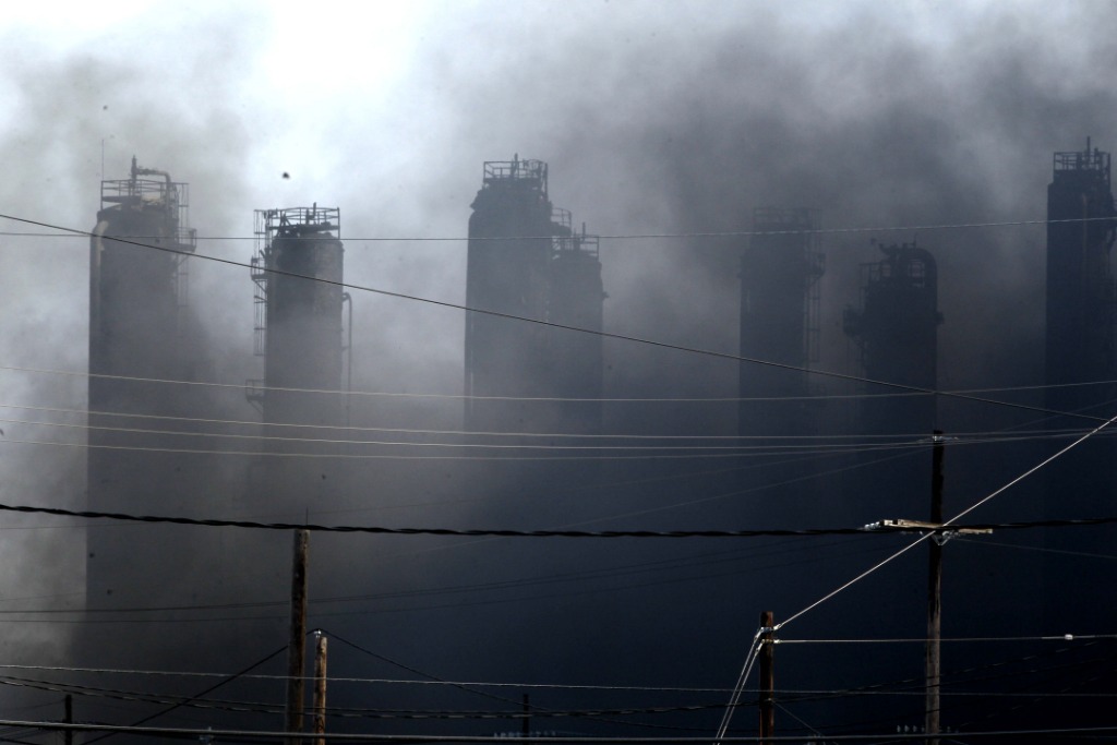 2019年11月27日,在美國得克薩斯州杰斐遜縣,發(fā)生爆炸的化工廠(chǎng)濃煙滾滾。新華社發(fā)(宋穹攝)