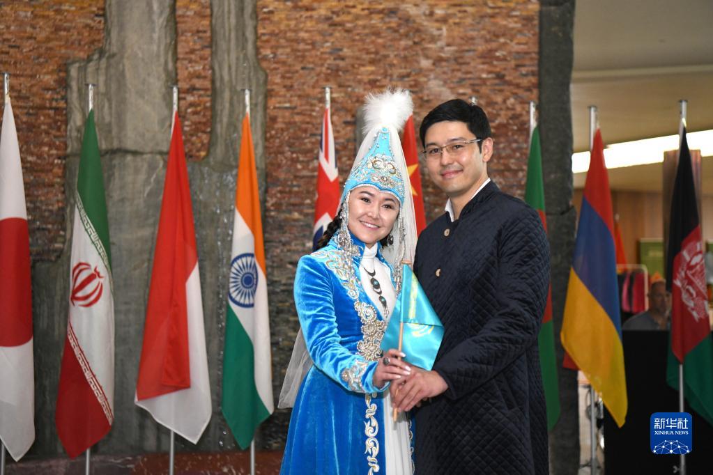 6月7日,在瑞士日內瓦,來(lái)自哈薩克斯坦的代表向來(lái)賓們展示本國特色的婚俗以及相關(guān)的文化傳統。