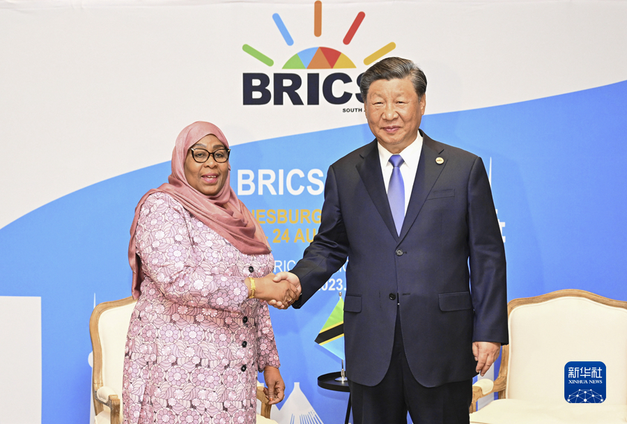 當地時(shí)間8月24日上午,國家主席習近平在約翰內斯堡出席金磚國家領(lǐng)導人會(huì )晤期間會(huì )見(jiàn)坦桑尼亞總統哈桑。