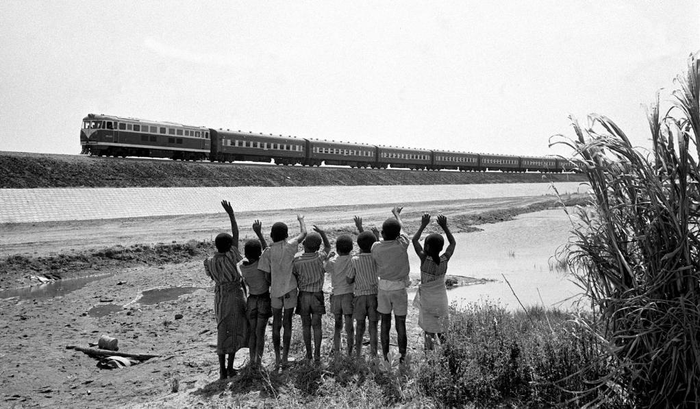 贊比亞魯西瓦西湖畔的少年兒童歡迎坦贊鐵路的列車(chē)通到他們的家鄉(1976年攝)。上世紀六七十年代,數萬(wàn)名中國專(zhuān)家、鐵路工人奔赴非洲,同坦桑尼亞和贊比亞人民攜手并肩,修筑了貫通東部和中南部非洲的坦贊鐵路。坦贊鐵路的建成,極大鼓舞了非洲人民,為各國民族獨立與解放事業(yè)發(fā)揮了重要作用,被譽(yù)為非洲的“友誼之路”和“自由之路”。新華社發(fā)