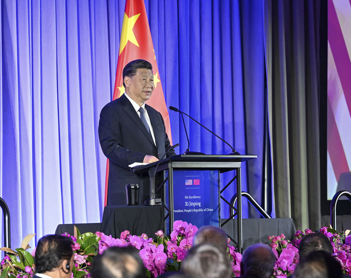 當地時(shí)間11月15日晚,國家主席習近平在美國舊金山出席美國友好團體聯(lián)合舉行的歡迎宴會(huì )。這是習近平發(fā)表重要演講。